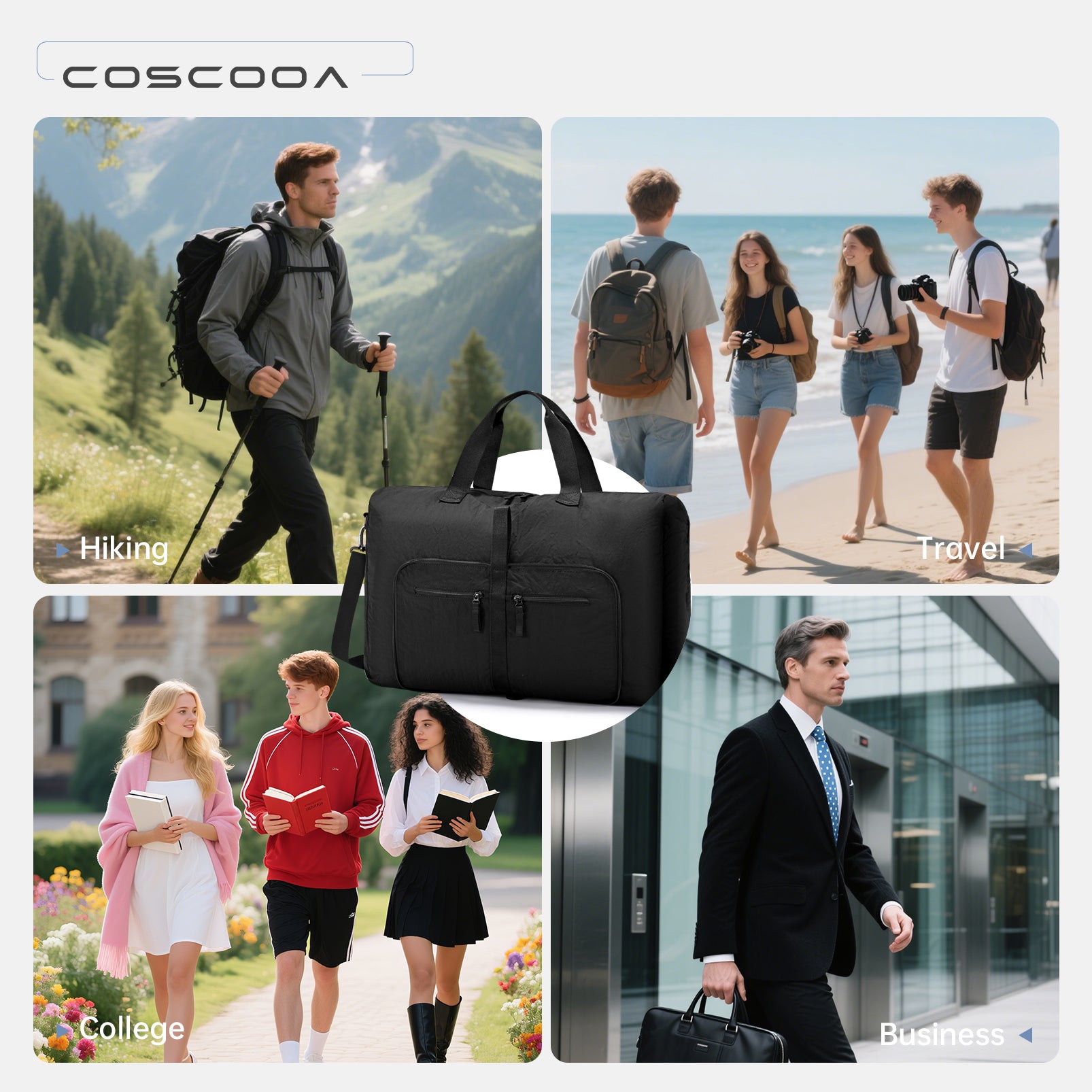- 【Large Capacity Carry-On Hand Luggage】: COSCOOA travel bag size is approx 21.6x15.7x 7.8 inch / 52x35x18 cm, 40L, suitable to carry on flights of Ryanair 55x40x20cm. The large personal item bag can be fast folded into itself with a compact size of 10x6 inch, only 1/18 of a regular size luggage. Always take this folding duffle with you on any trip, open up when you need to carry gifts for your friends, or to transfer stuffs from your damaged luggage.